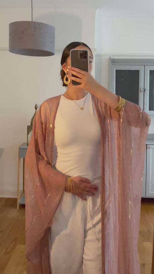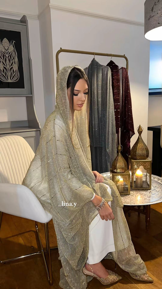 The Aliyna Abaya is a stunning sheer evening abaya, featuring gold foil...