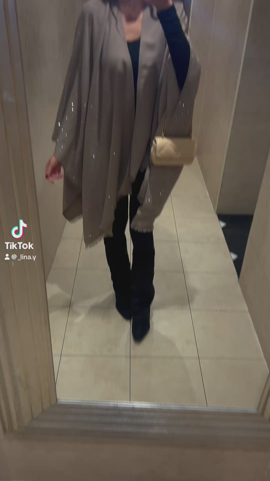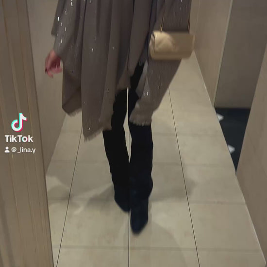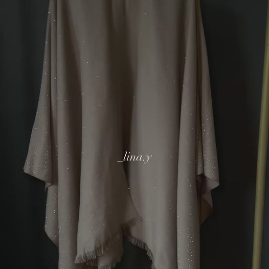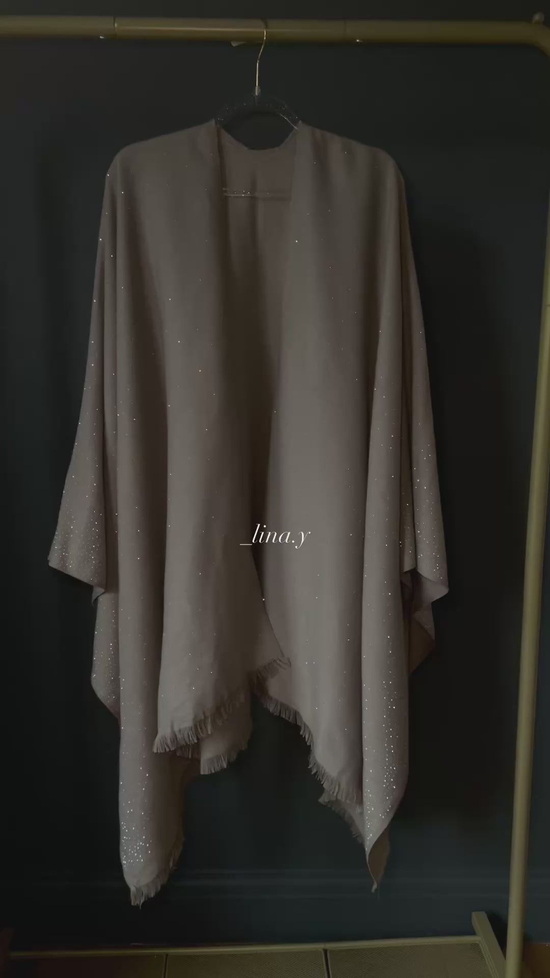 A shawl crafted from luxuriously soft premium viscose, designed with an elegant, relaxed silhouette that drapes beautifully over the shoulders. Subtly finished with a gradient of light-reflective crystals, it catches the light with every movement, adding a refined touch of shimmer. Perfect for both day and evening wear throughout the autumn–winter season.